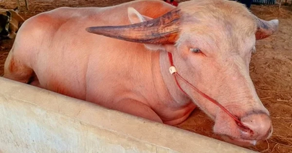 Hình ảnh của con trâu bạch tạng được lan truyền rộng rãi trên các mạng xã hội, khiến nhiều người phải trầm trồ ngưỡng mộ. Con trâu này thể hiện vẻ đẹp độc đáo, với màu da trắng sáng và đôi mắt sáng mang đến cảm giác lanh lợi. Chắc chắn rằng, với số tiền 1,4 tỷ đồng, đây không chỉ là một con vật mà còn là tài sản của gia đình.