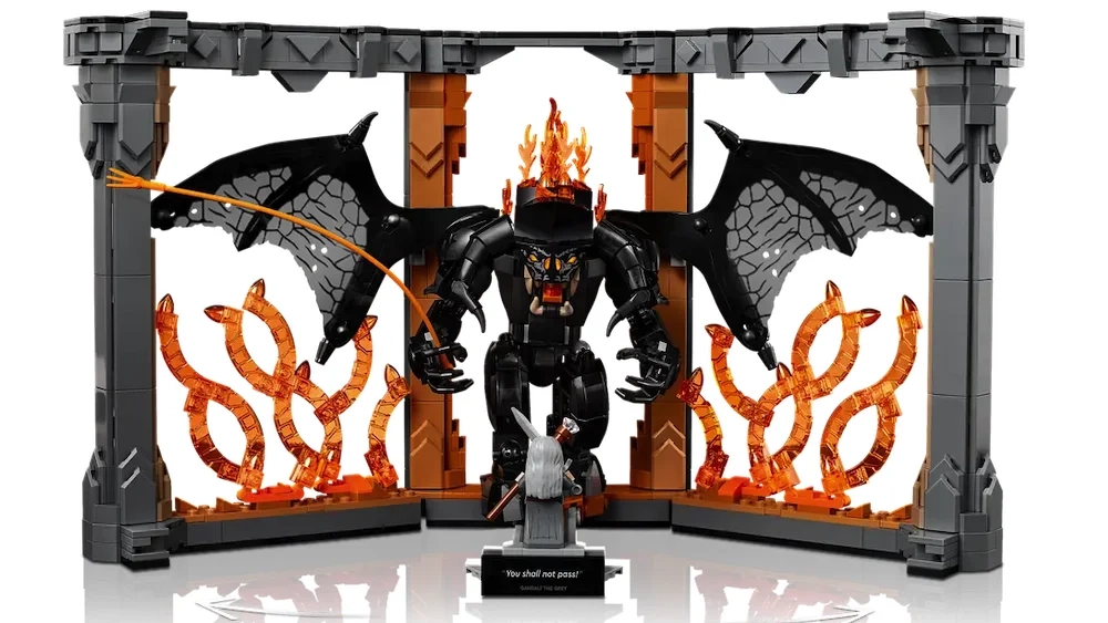 Về phần Balrog, nhân vật này được coi như một hình nộm có thể tạo dáng, bởi bạn có thể tùy ý điều chỉnh cánh, tay, chân và các ngón tay. Balrog đi kèm với phụ kiện roi và các yếu tố lửa được gắn ở lưng. Lego đã sử dụng các tấm nhựa trong linh hoạt để tạo nên đôi cánh, mà trước đây chỉ xuất hiện trong một bộ Lego khác: con Fell Beast, bộ sản phẩm có 269 miếng ghép, được tặng kèm cho các thành viên Lego Insiders khi bộ mô hình lớn Barad-dûr được phát hành vào năm 2024.