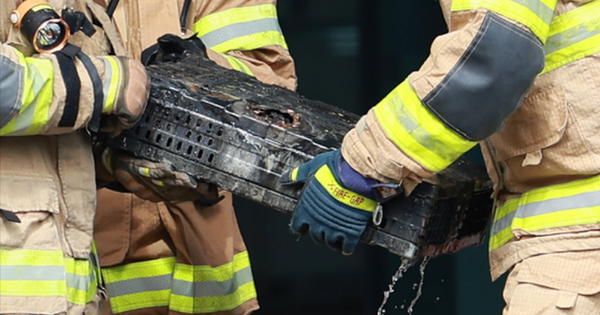 Lính cứu hỏa đang cố gắng làm nguội các ổ cứng dữ liệu sau vụ cháy.